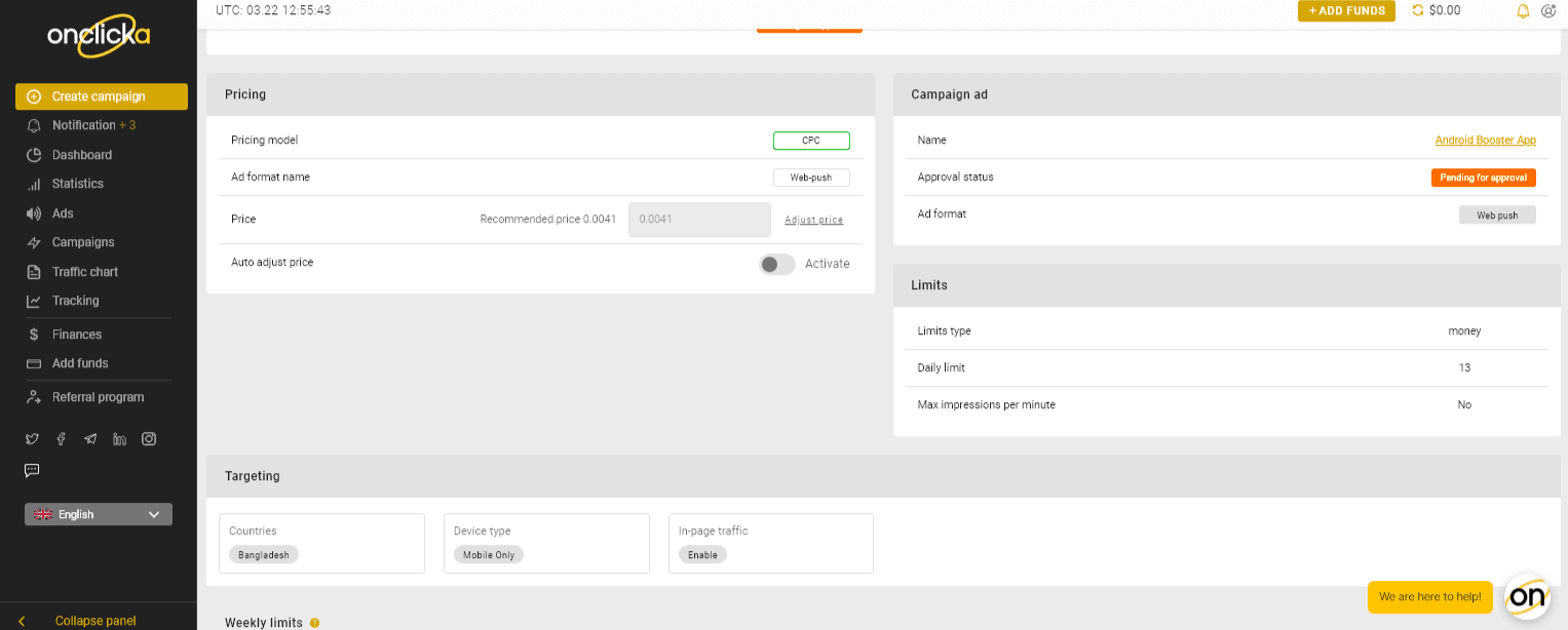 3. Set up your campaign: Create a campaign targeting Bangladesh and select mobile devices as your target. Set minimal limits for the campaign as the traffic is already bounded.